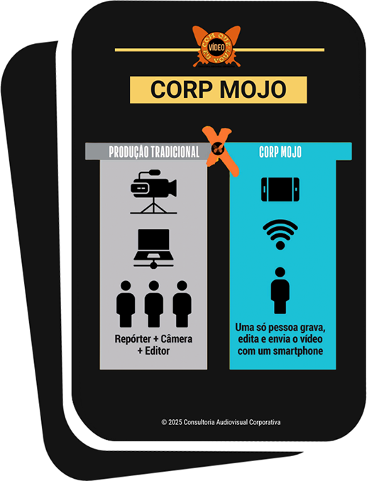 Atividade prática que utiliza as técnicas de Mobile Journalism (MoJo) para captação e construção de narrativas audiovisuais. O Corp MoJo não se limita a apenas fotografar e filmar com o celular. Ele demanda o domínio de linguagem e técnica específicas, e utilizado na geração de conteúdo para empresas, instituições e iniciativas culturais, potencializa e democratiza a produção em audiovisual.