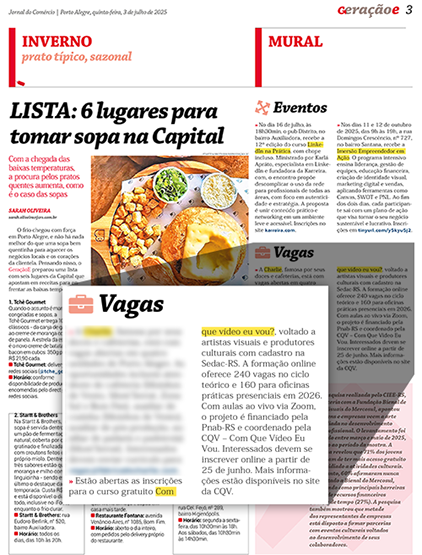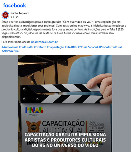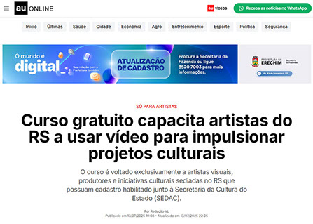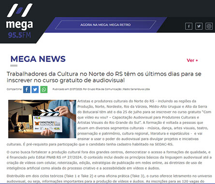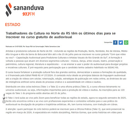 Chamada do curso “Com que vídeo eu vou? – Capacitação Audiovisual para produtores culturais e artistas visuais do Rio Grande do Sul” no programa Band News Porto Alegre em 17/07/2025