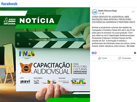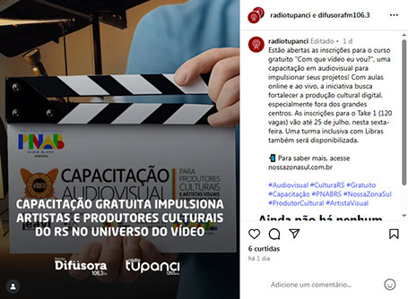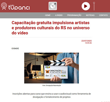 Chamada do curso “Com que vídeo eu vou? – Capacitação Audiovisual para produtores culturais e artistas visuais do Rio Grande do Sul” no programa Band News Porto Alegre em 18/07/2025